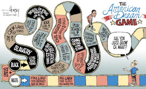 You think black Americans are oppressed? Compared to what? America a hundred years ago? How about women? How about the poor? Many poor Americans have access to technological and medical advances the richest Americans a hundred years ago would have paid vast fortunes to acquire had it been possible. There are no “Irish Need Not Apply” signs anymore. Asians aren’t being worked to death on the railroads. Little kids aren’t being forced to drop out of school and head to the coal mines. Seventy one percent of the world’s population lives on less than $10 a day and you want to tell me how bad anyone in America has it?Please. Even the homeless panhandlers make more than that here.