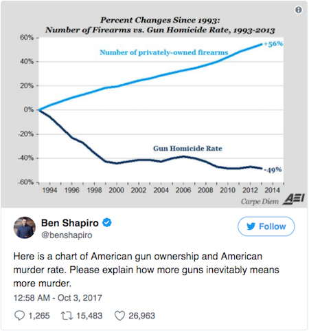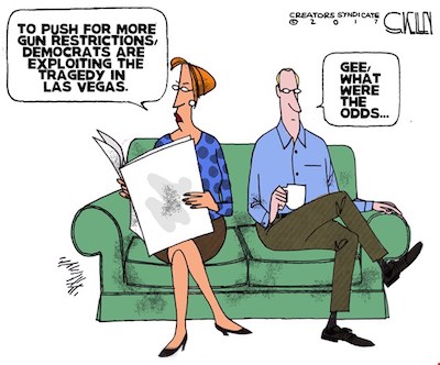 First up, we present as cogent an encapsulation of our view on the Las Vegas massacre as we’ve seen, courtesy of Townhall.com’s Guy Benson quoting Republican Congressman Mo Brooks (the target of the same Progressive gunman who shot Steve Scalise at a Congressional baseball practice mere months ago) in response to reporters questioning whether that attempt at mass murder had changed his view on the 2nd Amendment: