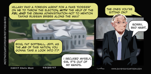 Those names will matter, since someone at the DNC and at the Clinton campaign will need to explain how they somehow both forgot to list Fusion as a vendor in their campaign-finance filings.Some Justice Department lawyer is presumably already looking into whether this was a willful evasion (Or, given Jeff Sessions disinclination to pursue any Clinton crimes to date, possibly not!) , which can carry criminal penalties. It’s one thing to forget to list that local hot-dog supplier for the campaign picnic. It’s a little fishier when two entities both fail to list the firm that supplied them the most explosive hit job in a generation.