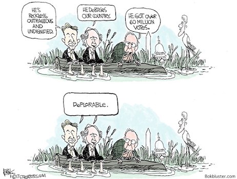 It would be easy, at this point, to start to wander down the rabbit hole, to wonder how much of the so-called “Russia controversy” is based on the Clinton campaign’s opposition research, but let’s not speculate. The truth will emerge. Instead, let’s do something else: Let’s consider how the Russian-dossier story has thus far represented a perfect storm of classic Clintonism, media irresponsibility, and Democratic moral blindness…”