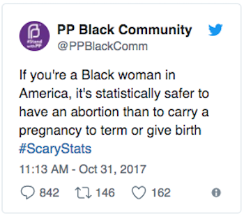 “In the spirit of Halloween, Planned Parenthood sent out a truly ghastly tweet: they claimed it’s “statistically safer” for a black woman in the United States to have an abortion than to actually give birth to a baby.