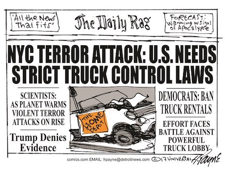 This goes back to what we said in the aftermath of the Vegas massacre: as terrible as it was, those unfamiliar with the methodology of mass murder failed to understand the death toll would undoubtedly have been even higher had Paddock driven a Stepvan filled with ammonium nitrate, diesel fuel and ball bearings into the crowd, let alone careened a speeding semi off the Strip straight into the mass of country music fans.