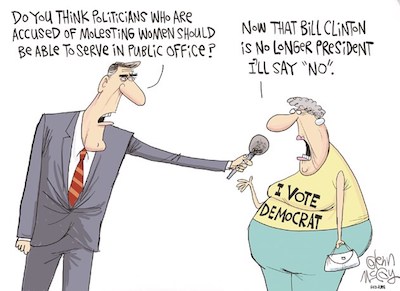 And if you missed our Friday installment, this bitingly accurate portrait of prominent Progressives’ self-evident views on sexual harassment and abuse deserves an encore presentation: