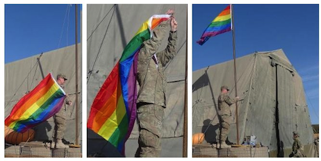 The images have outraged social conservatives like Tony Perkins, a veteran and president of the Family Research Council. “There, in the dusty desert of war, an Army outpost saluted the colors of the homosexual lobby by flying a rainbow flag in place of Old Glory,” Perkins said. “These displays are an uncomfortable reminder of the open policy that few of the troops support.”