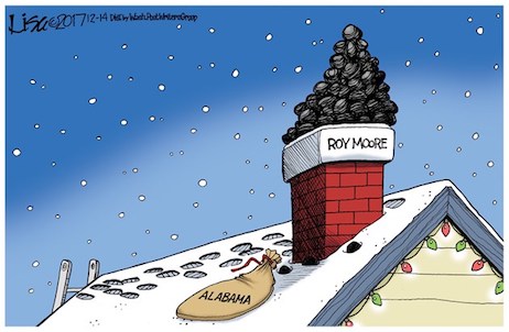 “As I noted late last night, the Republican party dodged a bullet yesterday. As frustrating as it is to lose a Senate seat in a ruby-red state, it would be worse to spend the next three years having every inane, offensive, and Constitutionally illiterate utterance from Roy Moore’s mouth hung around the necks of rest of the party. (This assumes that the GOP didn’t feel the moral and political need to expel him after a Senate Ethics Committee investigation.) Sometimes your primary voters completely mess up and nominate a walking liability. Better to take the short term pain for the longer-term gain.