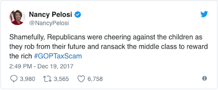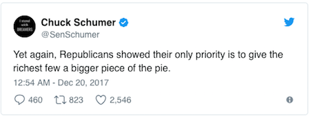 Note the key words. A tax cut is a “heist.” It’s “looting” the government’s money. You’re “robbing” and “ransacking” the middle class. Schumer is the most measured, and even he acts like the government is “giving” people money by granting a tax break.