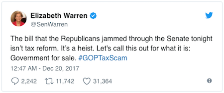 Yahoo News: “Meet some victims of the Trump tax bill.” Washington Post: “10 Reasons Democrats think the tax bill will be a political loser for Trump’s GOP.” New York Times: “In Tax Overhaul, Trump Tries to Defy Economic Odds.” Business Insider: “Americans have already made up their minds about the tax bill—and it looks brutal for the GOP.”