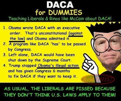 “…The only person who gets to decide whether DACA’s continuation is in the public interest is the President of the United States.Mind you, this is not an instance of Trump creating a new unilateral policy out of whole cloth, to which there may be legitimate constitutional objections. It is an instance of the current president simply undoing an existing unilateral executive action undertaken by his predecessor.If Obama had the authority to enact DACA through the stroke of a pen, Trump clearly has the authority to rescind it using the same method.That is how executive orders work, and it’s why lawsuits to thwart Trump’s call in this case should be dismissed out of hand as utterly baseless. And by the way, it’s not entirely clear at all that Obama actually did possess the power to extend an executive amnesty to an entire class of people the way he did. I’ll let a noted legal scholar explain the constitutional hurdles involved:
