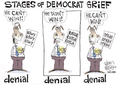 Deep-state bureaucrats and holdover Obama appointees refused to carry out presidential orders and became causes célèbres for violating their oaths of office. Justices were cherry-picked for stays of presidential directives (such as the subject of our item immediately above.)on the basis on their liberal fides — until higher courts overturned their rulings. The Democratic congressional minority made wholescale effort to slow down confirmation of almost every presidential appointment.