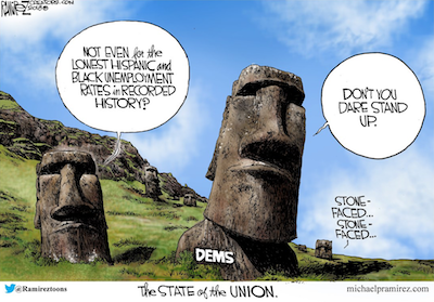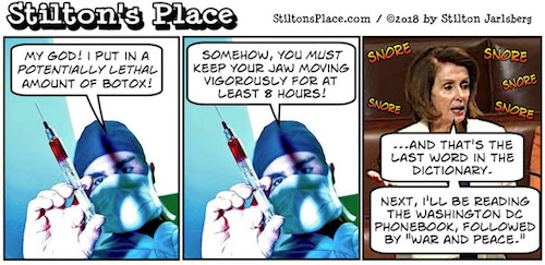 …to not only wet, chilly weather, but a tooth extraction resulting from a cracked molar, today’s offering will be somewhat abbreviated. And since certain pictures are worth far more than any thousand words we might offer, we’re going to substitute the brilliant, biting satire of Stilton Jarlsberg and Michael Ramirez, along with a few of our other favorite political cartoonists, in place of our normal editorializing on the stories of the day.