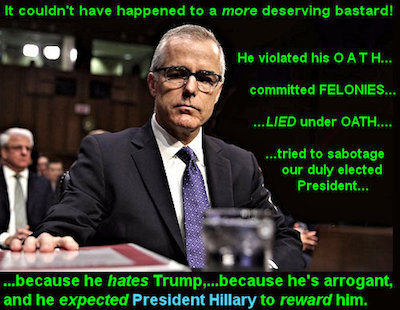 For example, while we believe it’s well worth your time to peruse these two analyses of the various reactions to Andrew McCabe’s well-deserved and long-overdue termination, the first courtesy of Scott Morefield and Townhall.com…