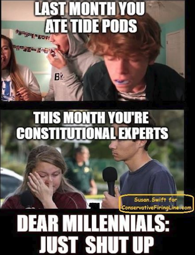 Even though first year grad school students have literally multiple times the actual knowledge on the issues pertaining to the social science of guns, their effects, and the good and bad attributed to their owners, the lazy media continue to treat these five kids as though they have PHD’s.