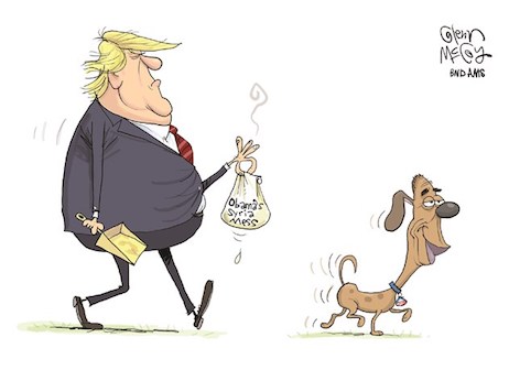 How do you define a death wish? How about, “using chemical weapons in an area where their effects are likely to be recorded on camera, right before John Bolton becomes national security adviser”? You don’t tug on Superman’s cape, you don’t spit into the wind, you don’t pull the mask off the ol’ Lone Ranger, and you don’t mess around with The ‘Stache.