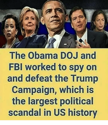 And we for one are unafraid to put Andrew McCabe, Rod Rosenstein, Barack Hussein Obama, Cheryl Mills, Huma Abedin, James Clapper, John Brennan, Hillary Clinton and everyone/anyone else who facilitated or cooperated in what is the most corrupt act of unconstitutional subterfuge ever perpetrated in our nation’s history in the same category as Comey!!!