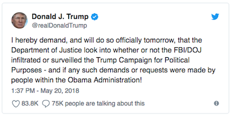 …we’re on the road to finding out. Though, given the The Donald hasn’t been able, if indeed he’s willing, to force the DOJ to cooperate with Congress doesn’t leave us awash in optimism this command will be obeyed.