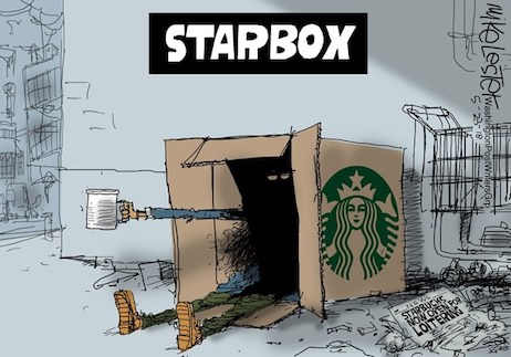 Starbucks had arrived at the inevitable endpoint of its politicized retailing. On instinct, Starbucks decided it could also be a homeless shelter.But then the social-media monitors vetoed that. What the Starbucks crucible makes clear is…you can’t win.