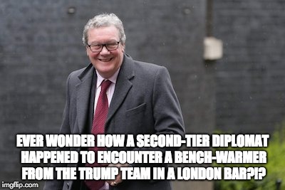The FBI’s media scribes have dutifully reported the bare facts of that “intel.”We are told the infamous tip came from Alexander Downer, at the time the Australian ambassador to the U.K. Mr. Downer invited Mr. Papadopoulos for a drink(WHY?!? How would Alexander Downer have the faintest clue as to who or what Papadopoulos was?!?)in early May 2016, where the aide told the ambassador the Russians had dirt on Hillary Clinton. Word of this encounter at some point reached the FBI, inspiring it to launch its counterintelligence investigation into the Trump campaign on July 31.