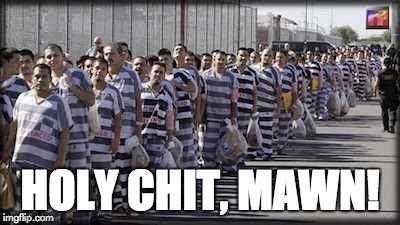 “…A new Department of Justice report released Thursday reveals 20 percent of federally incarcerated individuals in the United States are illegal aliens, costing taxpayers $1.5 million per day. Many(We’d say the vast majority!) of these individuals committed serious and violent crimes, in additional(What, no spellcheck at Townhall.com?) to entering the country illegally.