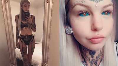 The body piercer, from Australia, told Daily Mail Australia: “I have no regrets whatsoever. I’m absolutely in love with my image.”Amber says she “hated” the way she used to look and thought her blonde locks and flawless skin were “very plain” and “boring.”