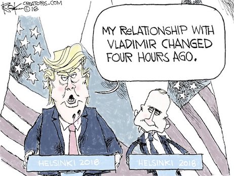“Following Monday’s summit in Helsinki, many American pundits and lawmakers on both sides of the aisle criticized President Trump for what they perceived as his failure to hold Russian President Vladimir Putin accountable for interfering in the 2016 U.S. presidential election. Sen. Jeff Flake (R-AZ) slammed Trump’s “shameful” performance, and former Central Intelligence Agency director John Brennan went so far as to call Putin the “master puppeteer” of the Oval Office.