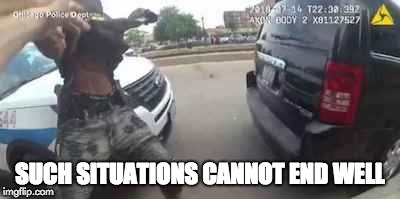 In the body cameravideo, Augustus did just what illegal gun possessors like him have, time and again, in Chicago and across the country – they pull away from police, they run, and they reach for the weapon. (As evidenced by our On The Lighter Side video, accessible through link #4 immediately below our Quote of the Day at the top of the page.)These are precisely the dangerous actions that result in people being shot and killed by police. And, despite the ignorant “outrage” of the protesters (Note how, just as in the Portland bakery non-event and the “Gentle Giant” myth, outrage born of ignorance is the common factor.), the police actions appear to be well within the law.