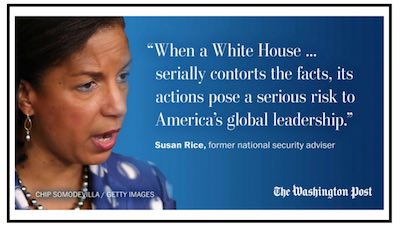 This from the serial liar who urged Bill Clinton to reject a Sudanese offer to surrender Osama bin Laden, repeatedly tried to sell Benghazi as a spontaneous demonstration inspired by an obscure video, called Bowe Bergdahl a hero and backed the Iran deal.