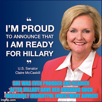 Speaking of those who should simply be condemned, writing at Best of the Web, Jim Freeman details the financial windfall benefitting a Missouri Senator and her husband: