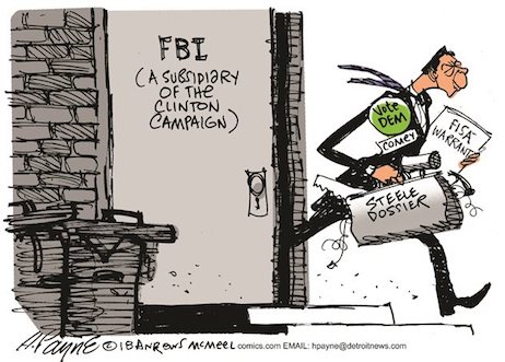 “On a sleepy summer Saturday, after months of stonewalling, the FBI dumped 412 pages of documents related to the Carter Page FISA surveillance warrants — the applications, the certifications, and the warrants themselves. Now that we can see it all in black and white — mostly black, as they are heavily redacted — it is crystal clear that the Steele dossier, an unverified Clinton-campaign product, was the driving force behind the Trump–Russia investigation.