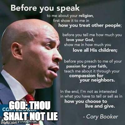 In other words, like so many other deceitful Dimocrats before him, Cory Booker believes God only gave Moses…