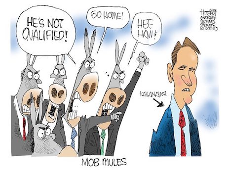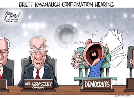 And so we watched Judiciary Democrats repeatedly interrupt Chairman Chuck Grassley with procedural complaints. Democrats accused Judge Kavanaugh of condoning school shootings, torture, toxic air, racism, sexism, presidential dictatorships. A would-be President Booker released confidential committee documents, daring his GOP colleagues to expel him: “Bring it on.” A would-be President Kamala Harris condescended to the judge, treating him like a criminal in the dock. A would-be President Elizabeth Warren, feeling left out because she isn’t on the committee, showed up for pictures outside the hearing room.