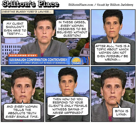 Stephanopoulos, on the other hand, defended a man who sexually assaulted Paula Jones while governor of Arkansas (why else would Bill have reached a settlement with her?!?), undeniably lied under oath and to the American people about his repeated Oval Office oral sex experiences with then-White House intern Monica Lewinsky as President of the United States (and whose first sexual encounter with Clinton kicked off in Stephanopoulos’ office!), and, if the level of proof with which Dimocrats have established Kavanaugh’s guilt is any guide, undoubtedly raped Juanita Broaddrick at the time he served as Arkansas’ attorney general.