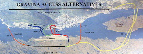 …Bridge to Nowhere, which, despite connecting Alaska’s barren (population 50 at the time) Gravina Island to the “booming” town of Ketchikan (population 50,000) and being the longest, most expensive route under consideration, was still…curiously…the one selected. It must have been coincidence Murkowski’s family owned otherwise worthless property directly adjacent to the approved route!