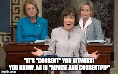 The left-wing mob doesn’t want to credit Senator Collins with making a considered judgment, or our endorsement of her speech as praise for the correct way the Senate should behave in assessing a nominee. The mob wants to interpret everything through the prism of identity politics and accuse opponents of condoning or laughing at sexual assault. As George Orwell said of the propagandists of his day, these people want to manipulate language to distort its meaning to make their opponents seem illegitimate…”