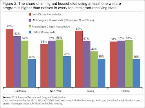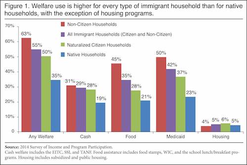 …“Concern over immigrant welfare use is justified, as households headed by non-citizens use means-tested welfare at high rates. Non-citizens in the data include illegal immigrants, long-term temporary visitors like guest workers, and permanent residents who have not naturalized. While barriers to welfare use exist for these groups, it has not prevented them from making extensive use of the welfare system, often receiving benefits on behalf of U.S.-born children,” added the Washington-based immigration think tank.