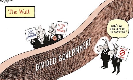 It would be one thing if Trump was demanding that Democrats make some great moral compromise. But he is not. Democrats say they are for border security. They may think that a wall is a costly and inefficient way to secure the border, but there is nothing inherently wrong with a wall. In 2006, 26 Senate Democrats — including Sens. Charles Schumer, Barack Obama and Hillary Clinton — votedfor the Secure Fence Act of 2006, which required the Department of Homeland Security to build two layers of reinforced fencing along 700 miles of the U.S.-Mexico border. Is there some profound moral difference between a fence and a wall?No…”