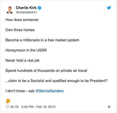 Bernie Sanders is pretty much the exact same guy that he was four decades ago, running on the same platform.(With a little racial divisiveness thrown in for good measure!) He’s making the same arguments for the same ideas about how America needs a socialist revolution that puts an end to millionaires and billionaires and private hospitals and moves social services from charities to government institutions. He’s always been friendly to leftist critics of America overseas and radicals eager to tear down the existing order and has been at best skeptical of U.S. military actions abroad (except during the Clinton administration) and U.S. intelligence agencies. Becoming a millionaire didn’t prompt him to revise his relentless demonization of millionaires as greedy.