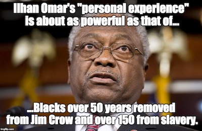 “Congressman James Clyburn, D-S.C., defended freshman Rep. Ilhan Omar, D-Minn., Wednesday by saying her experience was “more personal” than Jews whose parents survived the Holocaust. Clyburn argued Omar’s experience “is much more empirical — and powerful — than that of people who are generations removed from the Holocaust, Japanese internment camps during WWII and the other violent episodes that have marked history,” according to a report in The Hill.