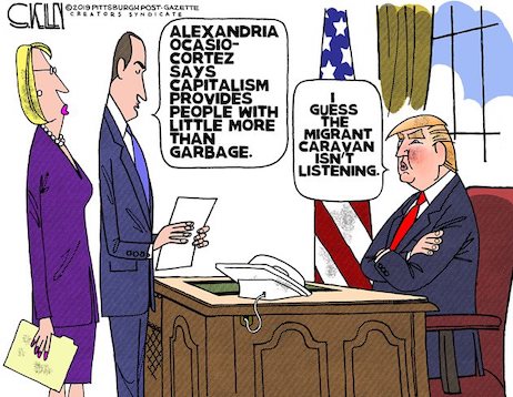 Meanwhile, the Green New Deal has been introduced, appropriately enough, by the youngest member of Congress, Rep. Alexandria Ocasio-Cortez. It reads more like a progressive letter to Santa Claus than a serious piece of legislation. (See its actual genesis in our Video of the Day, accessible through link #2 beneath our Quote of the Day at the top of the page.)