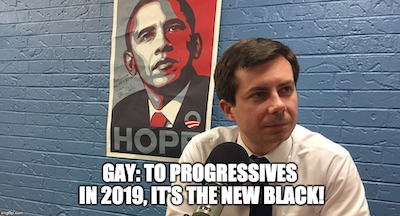 …Like his Democrat comrades – Booker, Harris, Warren – Buttigieg dons the shield of martyrdom, portraying himself as a persecuted minority whose suffering absolves him of responsibility for his aggressions and bad behavior. In fact, in the short time since Buttigieg announced he was gay, far from being persecuted as the member of a “marginalized” group, his political fortunes have taken the form of a minor miracle – an obscure mayor from a violence-ridden city of under 100,000 catapulted into the national limelight as a leading contender for the Democratic presidential nomination. Far from hurting him, it is the fact that he is gay that has powered this rise, and he knows it. I can promise you that I am more persecuted every day by slanders and lies leading to lost opportunities for being a conservative than Pete Buttigieg will probably ever be for being gay. And unlike him I cannot capitalize on my marginalization by leftwing universities, publishing houses and media organizations for the crime of disagreeing with their political prejudices…”