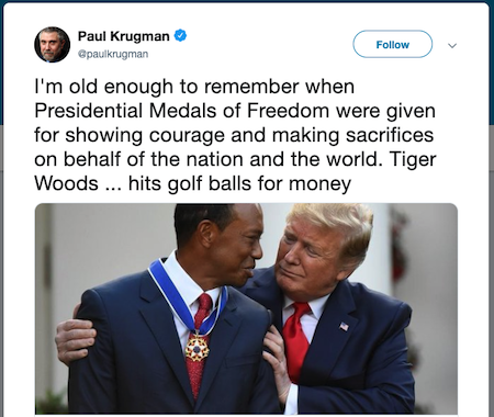 If you’ve ever had the strength of will and mental toughness to endure one of his commentaries in its entirety, you know Krugman, who somehow…amazingly…won a Nobel Prize in economics, is proof positive expertise in one subject or field does not by extension confer even minimal knowledge in any other. And why Progressives prefer a populace as ignorant of history as possible.