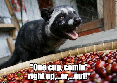 Klatch Coffee Roasters, which has several locations in California, will be serving up the Elida Geisha 803, coffee beans from Panama that cost $803 per pound and recently won first place at the Best of Panama coffee competition. The beans, a Kopi Luwak variety, are made by feeding the beans to cat-like mammals who then poop it out.