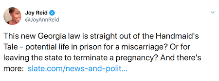 Slate: “Georgia just criminalized abortion. Women who terminate their pregnancies would receive life in prison.”