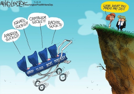 Trump apparently was directing his ire exclusively at particular first-generation congresswomen and suggesting that their anti-American furor logically might lead such unhappy U.S. citizens to consider voluntarydeportation. (You know…like so many Hollywood celebridiots promised after bothTrumpandBush were elected.)