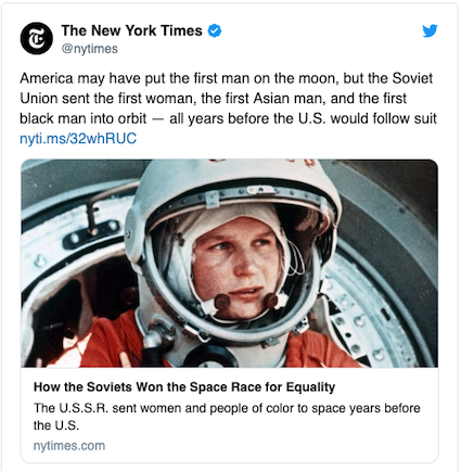 But hey, look at all the people who benefited from the Soviets putting the first woman, Asian and Negro into orbit. Uh,…that would be NO ONE!!!