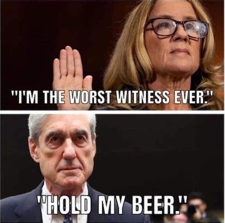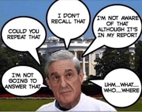 First up, in a quote which once again makes us wonder in what alternate universe these people reside, the Old Grey Nag’s Maureen Dowd dims the hopes of anyone who thought Silent Bob Mueller’s testimony before the House was going to suddenly restore rationality to The Left: