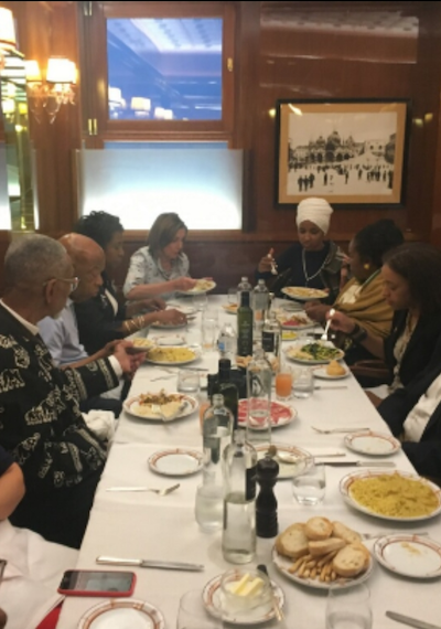 We find it particularly rich Omar was on this trip. Think about it: she came to America (which she now hates) to escape Somalia. Now she’s returning to Africa, which she fled, to commemorate the 400th anniversary (albeit inaccurate) of slavery in America, which she hates, in Africa, which she fled, a continent on which that peculiar institution still flourishes today.