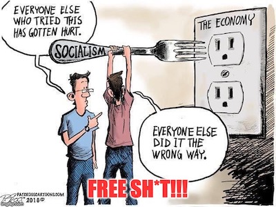 “…By the end of this endless debate, spooned out in one-minute dollops, I walked out with a $1,000-a-month check, an extra grand if I’m a female, untold reparations dollars if I am African American, Medicare from birth covering everything I’ll ever need until death, and the right to cross the border without any real penalty if I’m from another country. Prosecuting criminals of any kind generally got a thumbs-down, while white privilege made me immune from racist police who were painted as villains. And there will be no more pointless wars, carbon emissions will be zero by 2030, and it may take 10 years, but the government will run almost all health care.