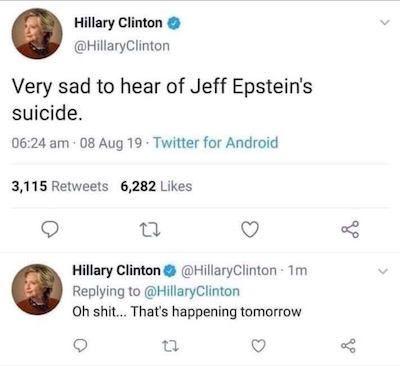 Seriously, at this point, we canonly theorize what happened to Jeffrey Epstein, though his “suicide” did lead Andy McCarthy to question whether he should have been in federal custody in the first place. What we can say with certainty is Bill Clinton and a number of other members of the Liberal Elite started sleeping better Saturday night. More on this story as it develops.