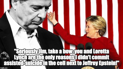 Then there’s the latest on DOJ/FBI complicity in covering up what was perhaps the biggest political scandal in American history prior to DOJ/FBI involvement in the Russian collusion calumny, as, in a forward from Jeff Foutch, Frontpage Magazine‘s Deborah Weiss relays…