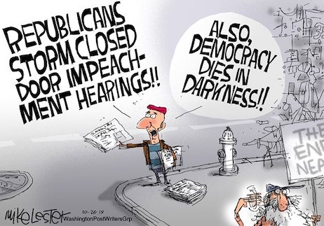 Democrats view control over the narrative as essential, having learned from their Russia-collusion escapade the perils of transparency. They banked on special counsel Robert Mueller’s investigation proving impeachment fodder, but got truth-bombed. Their subsequent open hearings on the subject—featuring Michael Cohen, Mr. Mueller and Corey Lewandowski —were, for the Democrats, embarrassing spectacles, at which Republicans punched gaping holes in their story line.
